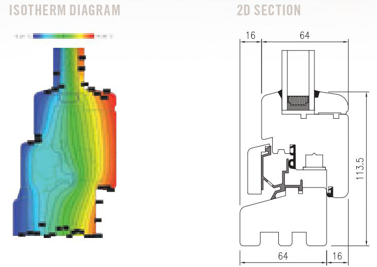 LAMINATED TIMBER DOORS AND WINDOWS CONSISTING OF 3 OR MORE LAYERS. 64X78 MM NOMINAL CASING SECTION AND 64 MM-THICK CASEMENT FRAME. STANDARD 4 MM FLOAT /15/4 MM FLOAT DOUBLE GLAZING. SILVER-COLOURED CONCEALED HARDWARE.